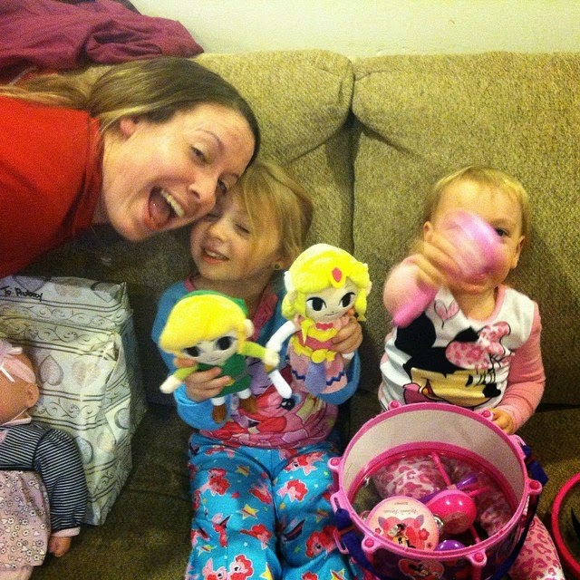 I found these Legend of Zelda dolls at a local comic store and knew Aubrey HAD to have them. She is obsessed with watching me play the game. Addie got a Minnie Mouse drum with a ton of instruments in it. Be on the look out for her debut album. She goes hard on those drums.